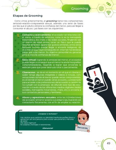 Como vimos anteriormente, el grooming tiene tres componentes: